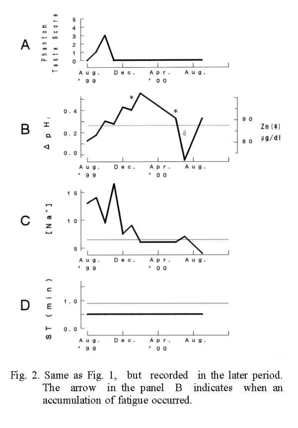 Disappearance of the phantom sweetness symptoms and salivary parameter of ΔpHI and the Na+ concentration. 31