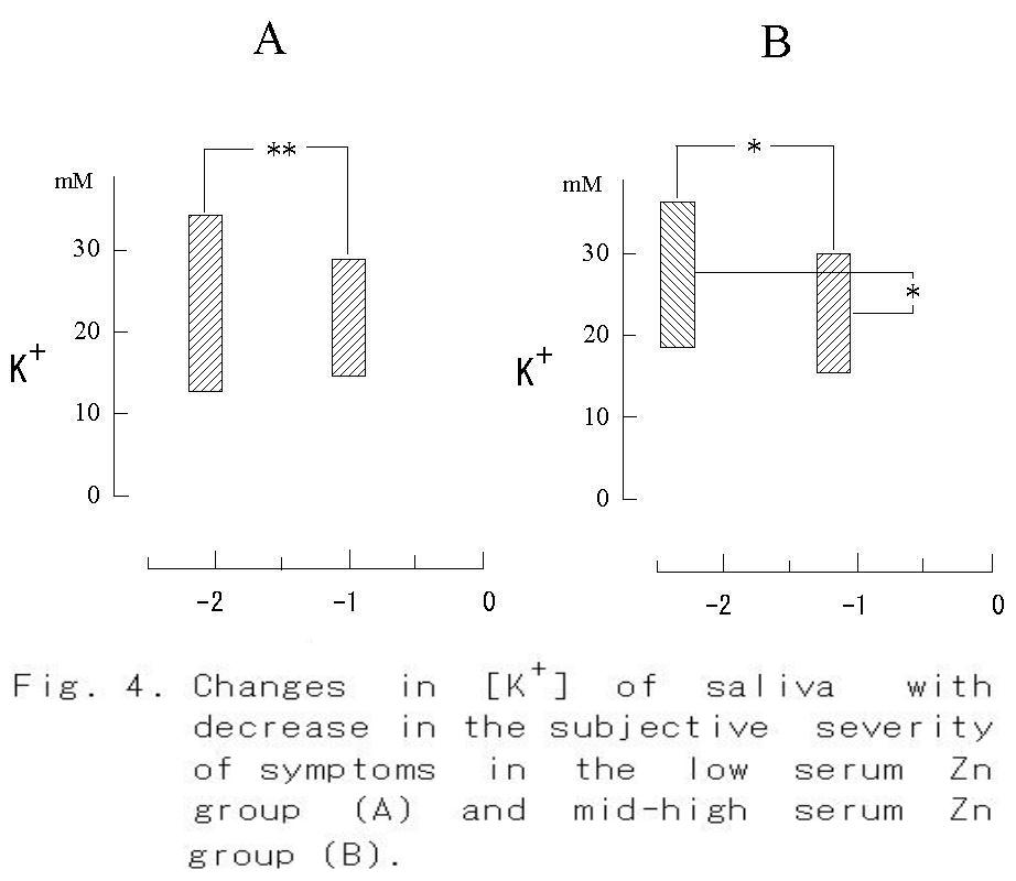 Since measured values of saliva, such as pH and concentrations of Na+ and K+ in resting saliva and reflex saliva are different (27-28), it is difficult to prevent contamination of reflex saliva occurring spontaneously when a relatively large amount of resting saliva is collected over a period of 10 minutes. However, since the mean sampling time in the present study was only 0.9±0.5 minutes, the possibility of contamination by reflex saliva could be excluded. It has also been reported these values fluctuate with circadian rhythm (29), but this fluctuation was minimized in the present study by performing measurement within the same clock time for subjects having regular sleep and awake cycles.