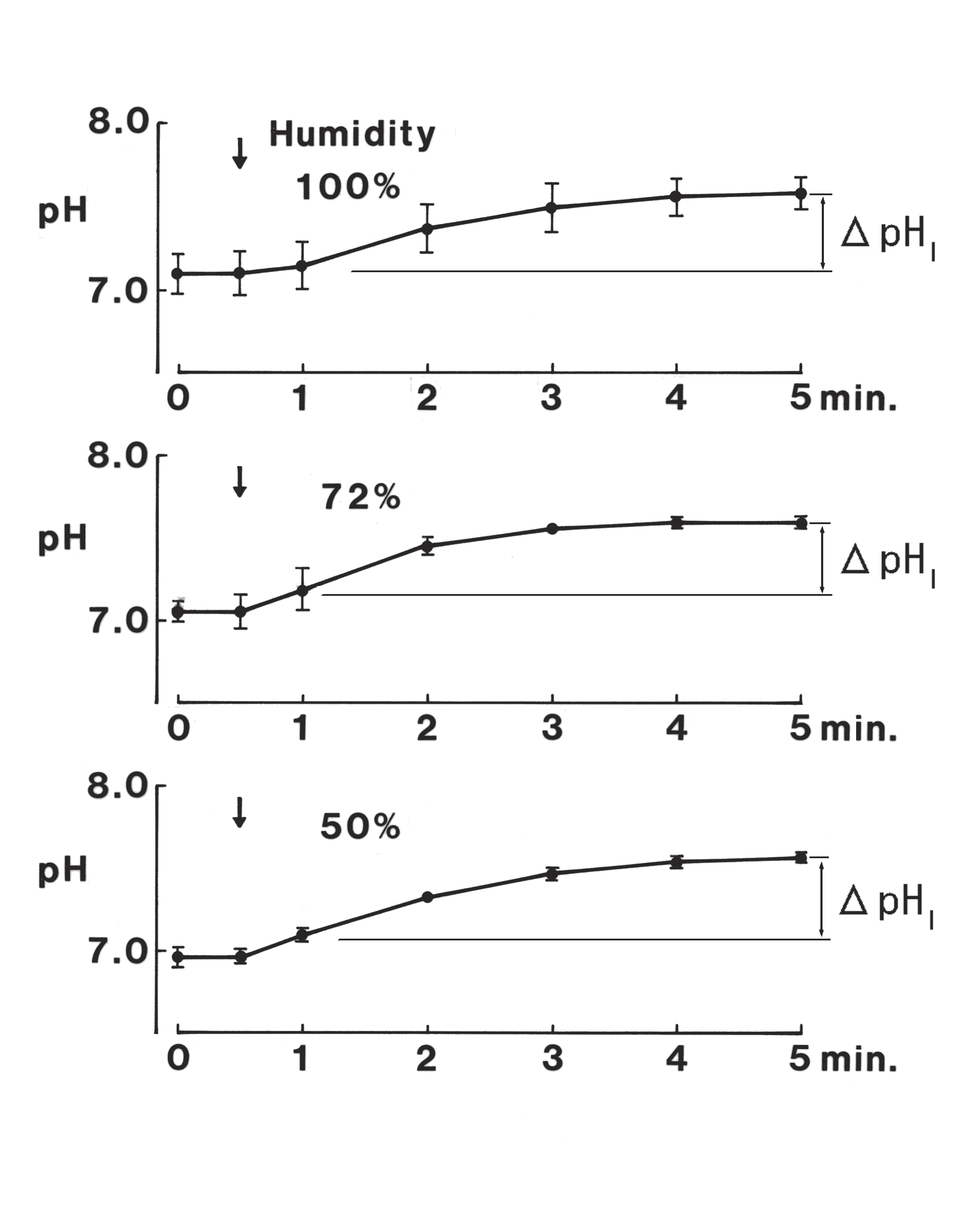 There was little influence of a change in humidity from 100 % to 50% on the ΔpHI.