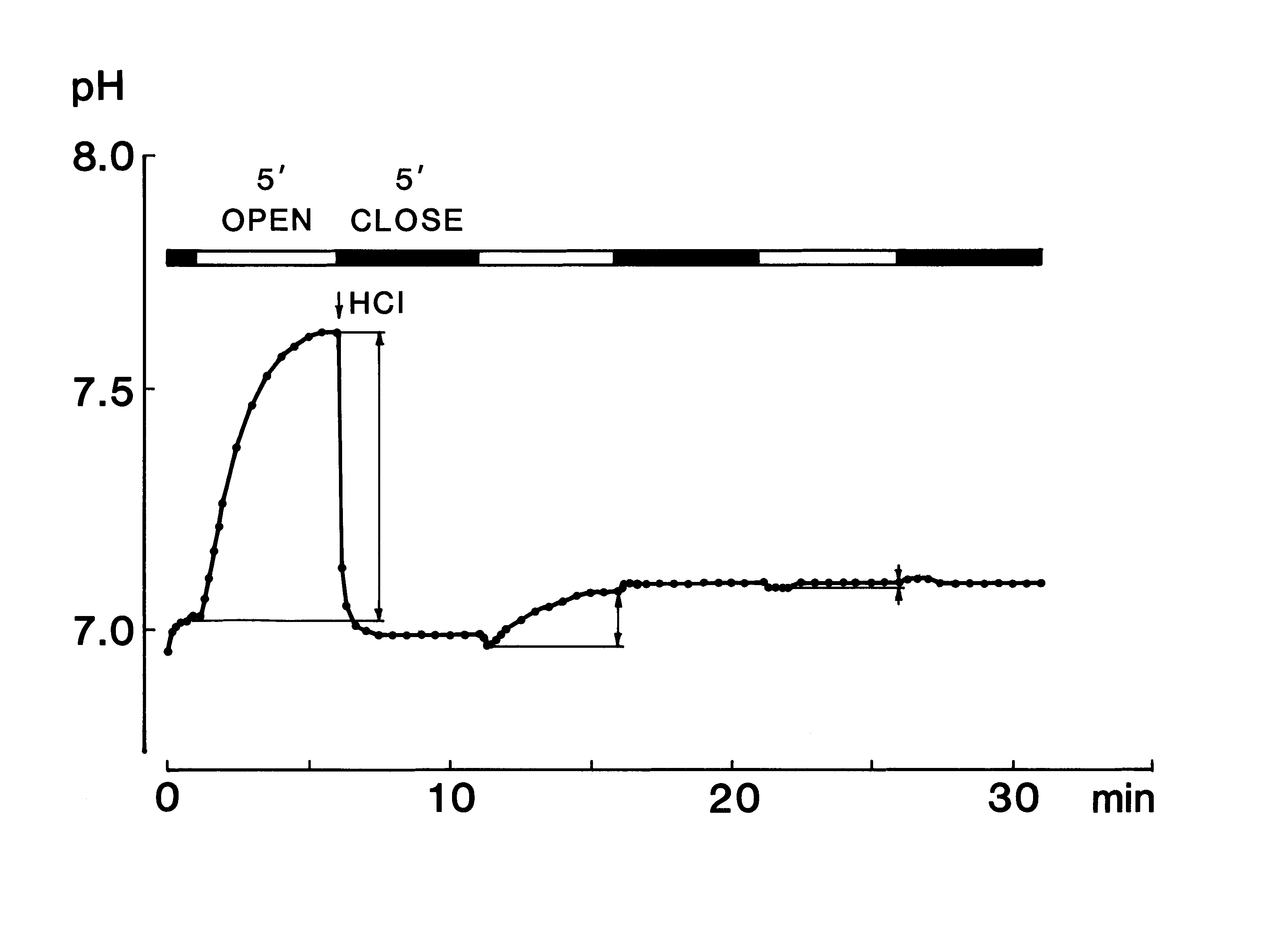 to the surface of the pH electrode. The pH elevation terminated at about