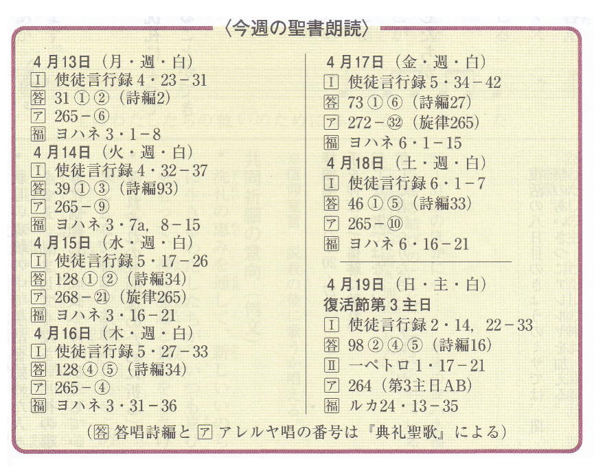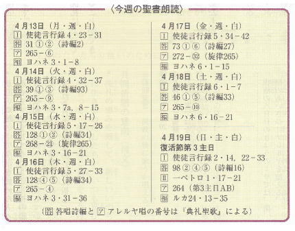 聖書と典礼![]() 今週の聖書朗読 ![]() |
